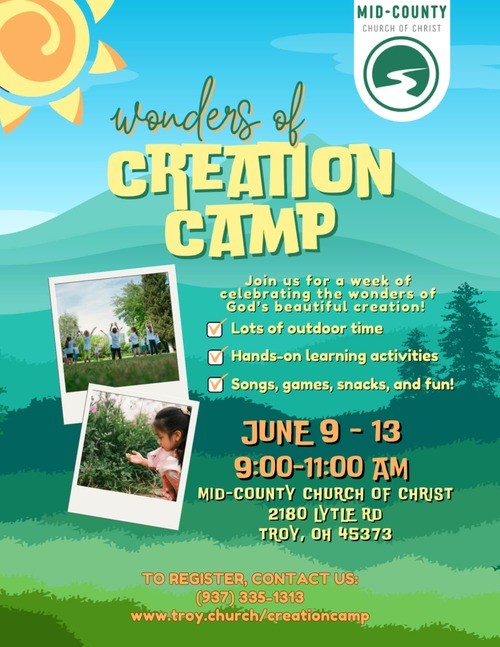 Creation Camp is a five-day event for children age 4 to sixth grade that is collaboratively designed by educators and ministry staff to help students see the wonder of God's creation all around them! The majority of the program will be outdoors (weather permitting) with lots of hands-on activities to keep the kids engaged.